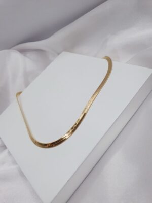 A corrente feminina dourada é um acessório elegante e sofisticado que pode ser usado para complementar qualquer look.
